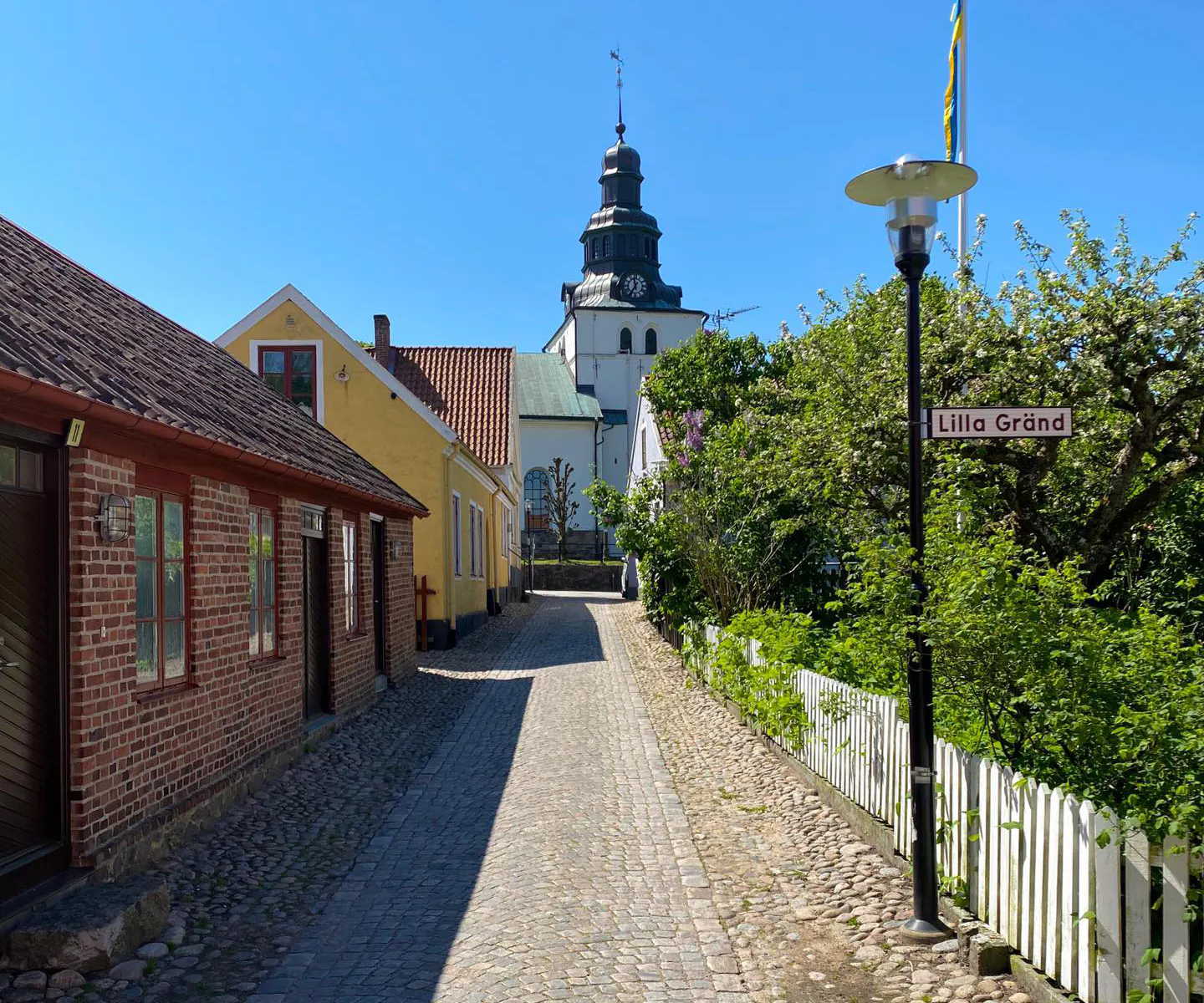 Slingrande gränder och kullerstensgator i Gamleby