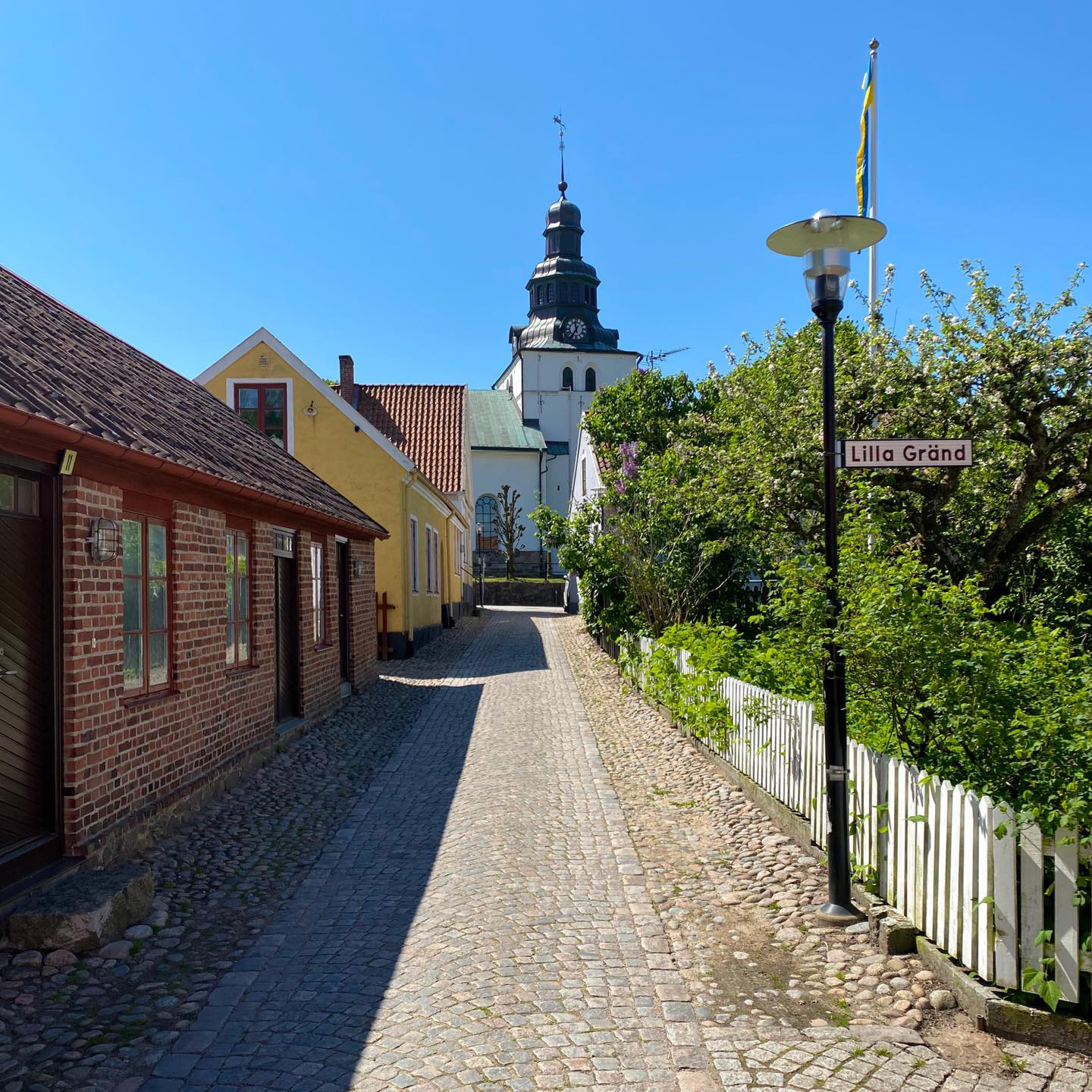 Slingrande gränder och kullerstensgator i Gamleby